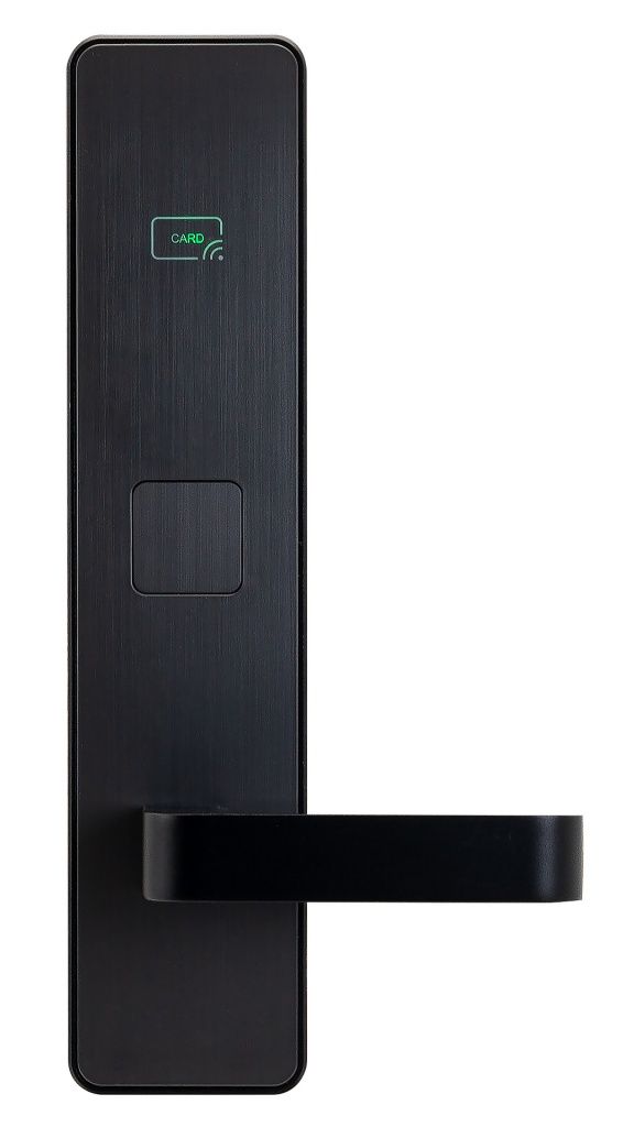The aluminum hotel door plate frame is corrosion-proof as a result of oxidized sandblasting. The color of hotel room door locks will remain vibrant after 10 years of use. Due to the CNC machine treatment of the frame, all corners and edges are perfectly even and smooth. The inner part of the door plate (the chassis) has an electroplated coating. This makes the construction much more durable than classic zinc alloy plates.